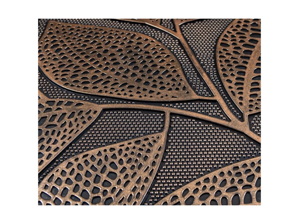 Jednoduchá elegantní rohožka vás zaujme neobvyklou barvou. Design imitující větvičku s listím ozvláštňuje zlatý povrch.